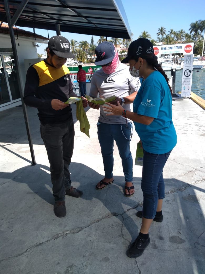 As in previous years, we conducted our “I Care for Whales” campaign, in which our volunteers distributed information brochures on whale watching guidelines and safe navigation practices at the Opequimar gas station in Marina Vallarta.